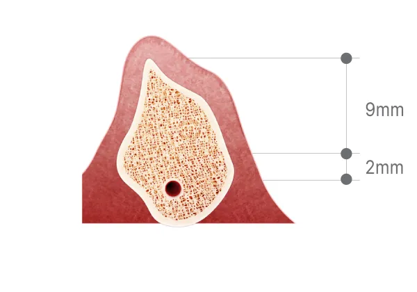 BDCuff is designed to protect implants from complications – with adequate soft tissue height (>4mm), BD Cuff® implants prevent crestal bone loss and contamination, especially in areas with thin gingiva (<2mm).